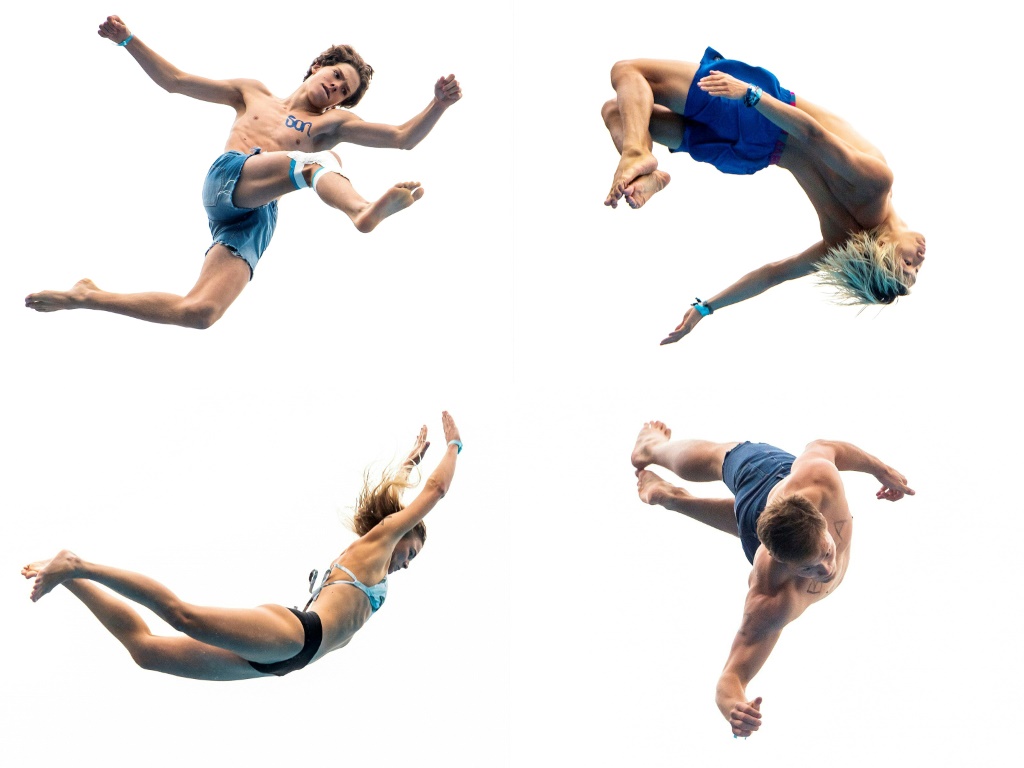 Deuxième séquence. Perché à dix mètres au-dessus du bassin, on montre ses muscles, on dabbe, on twerke, on harangue les spectateurs en contrebas galvanisés par une musique surpuissante.