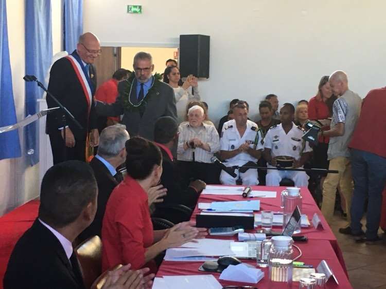 Comme attendu, Eddie Lecourieux vient d’être réélu maire du Mont-Dore par le conseil municipal à 27 voix sur 35. Le vote, secret et à la majorite absolu, était présidé par le doyen du conseil, Maurice Pelage, et le scrutin dépouillé par les deux plus jeunes, Frédéric Parent (Generations Mont-Dore) et Carl N’Guela (Vivre au Mont-Dore). En présence d’une large assemblée, dont le sénateur Pierre Frogier, le président du gouvernement Thierry Santa et l’ancien maire Eric Gay. Trois candidats étaient tout de même en lice : Eddie Lecourieux, Nina Julié ( 5 voix) et Romuald Pidjot (3 voix).