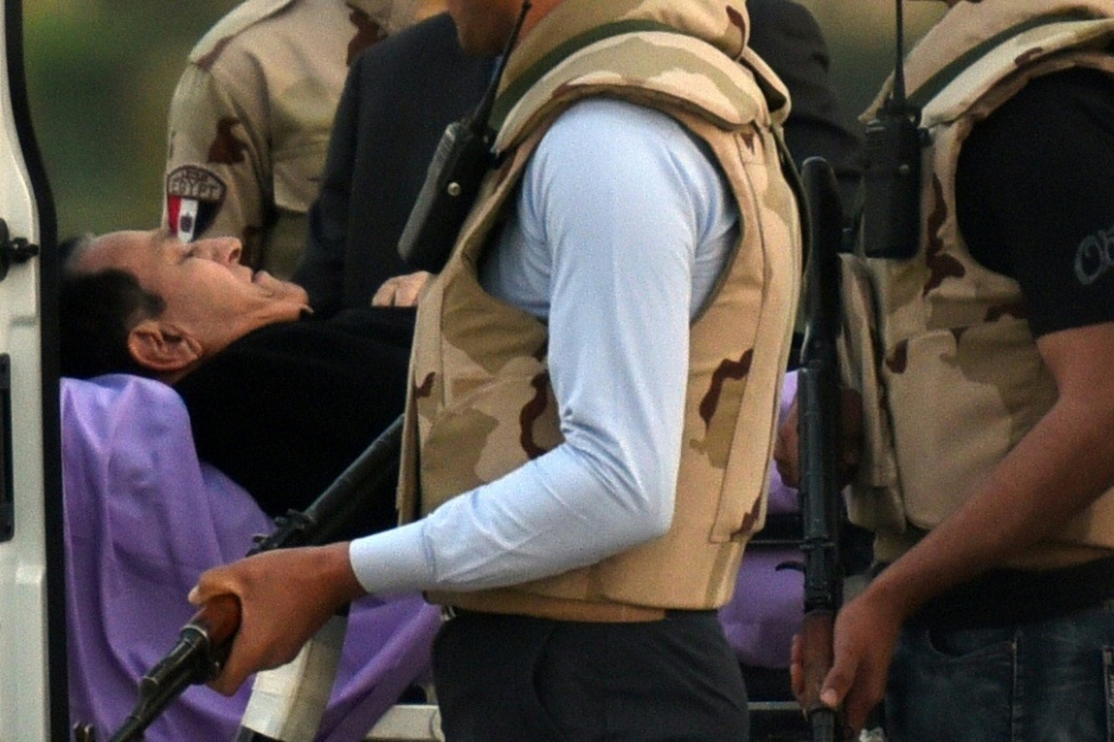 - © 2017 AFP | Crée le 24.03.2017 à 21h16 | Mis à jour le 24.03.2017 à 21h20ImprimerL'ancien président égyptien Hosni Moubarak, le 2 mars 2017, lors de son transport vers l'hôpital militaire du Caire après une audition au tribunal MOHAMED EL-SHAHED-AFP/Archives