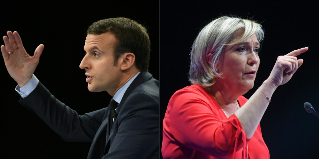 - © 2017 AFP | Crée le 06.05.2017 à 11h00 | Mis à jour le 06.05.2017 à 11h05ImprimerPhotomontage du 30 avril 2017 présentant le candidat centriste Emmanuel Macron (G) à l'élection présidentielle et la candidate d'extrême droite Marine Le Pen (D) Eric FEFERBERG, ALAIN JOCARD-AFP/Archives