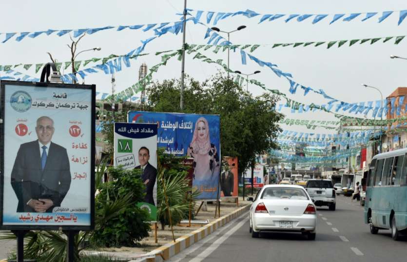 - © 2018 AFP | Crée le 10.05.2018 à 19h17 | Mis à jour le 10.05.2018 à 19h20ImprimerAffiches électorales pour les législatives dans une rue de Kirkouk, dans le nord de l'Irak, le 8 mais 2018 Marwan IBRAHIM-AFP