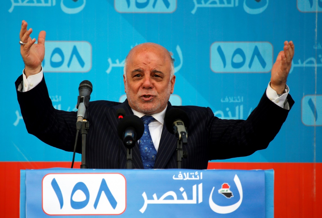 - © 2018 AFP | Crée le 12.05.2018 à 14h24 | Mis à jour le 12.05.2018 à 14h25ImprimerLe Premier ministre irakien Haider al-Abadi pendant la campagne à Nadjaf (Irak), le 3 mai 2018 Haidar HAMDANI-AFP/Archives