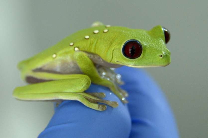 - © 2017 AFP | Crée le 18.07.2017 à 18h15 | Mis à jour le 18.07.2017 à 18h20ImprimerUne grenouille d'Arbre de spurrelli (Agalychnis spurrelli), au Centre Jambatu de recherche et conservation des amphibiens, à San Rafael, au sud-est de Quito en Equateur, le 4 juillet 2017 RODRIGO BUENDIA-AFP