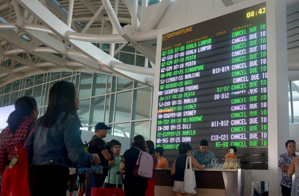 Compte tenu du danger pour le trafic aérien des cendres volcaniques du mont Agung projetées à quelque 2.000 mètres d'altitude, l'aéroport Ngurah Rai a été fermé à 03H00 (19H00 GMT jeudi) et le restera au moins jusqu'à 19h00 (12H00 GMT), ont précisé les autorités locales.