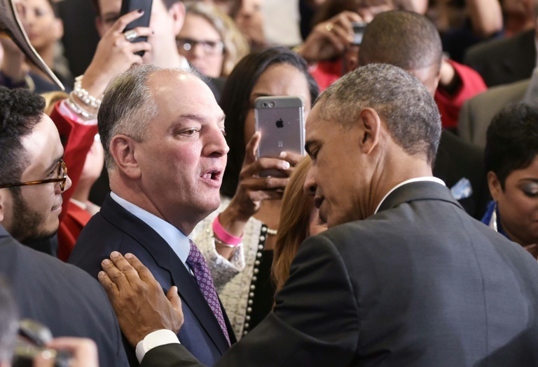 - © 2016 AFP | Crée le 07.07.2016 à 04h48 | Mis à jour le 07.07.2016 à 04h50ImprimerLe gouverneur de la Louisiane John Bel Edwards et Barack Obama, à Baton Rouge le 14 janvier 2016