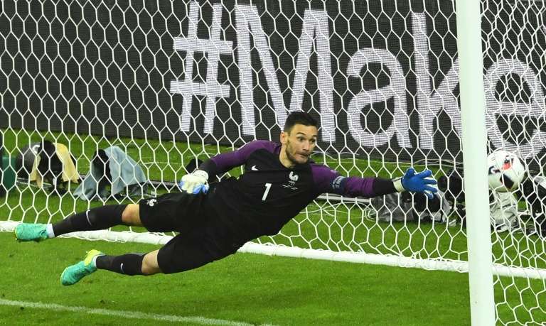 - © 2016 AFP | Crée le 04.07.2016 à 07h47 | Mis à jour le 04.07.2016 à 07h50ImprimerLe gardien français Hugo Lloris encaisse un but de l'Islandais Birkir Bjarnason, en quart de finale de l'Euro, le 3 juillet 2016 au Stade de France