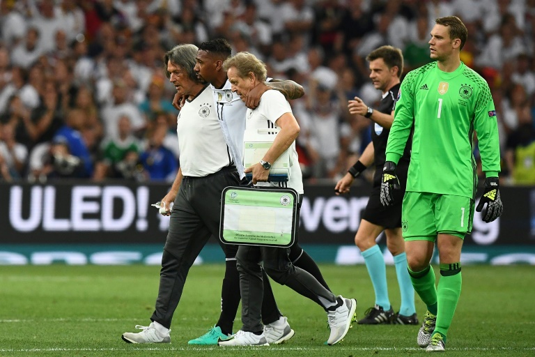 Le patron de la défense centrale de l'Allemagne Jerome Boateng est sorti sur blessure à la 61e minute de la demi-finale de l'Euro-2016 contre la France, jeudi à Marseille.