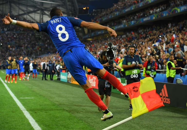 - © 2016 AFP | Crée le 23.06.2016 à 21h39 | Mis à jour le 23.06.2016 à 21h40ImprimerLe Français Dimitri Payet fête son but contre l'Albanie lors de l'Euro, le 15 juin 2016 à Marseille