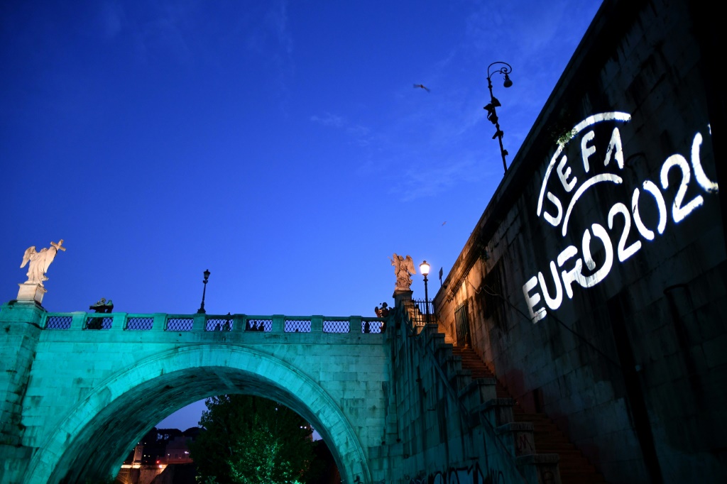 - © 2019 AFP | Crée le 27.11.2019 à 20h00 | Mis à jour le 29.01.2020 à 14h54ImprimerLe logo de l'Euro-2020 projeté sur un pont de Rome, le 11 juin 2019 Alberto PIZZOLI-AFP/Archives