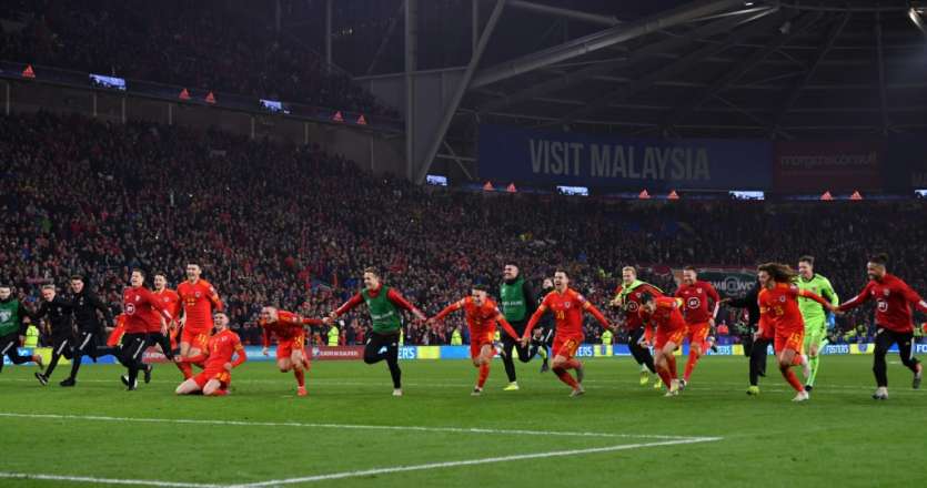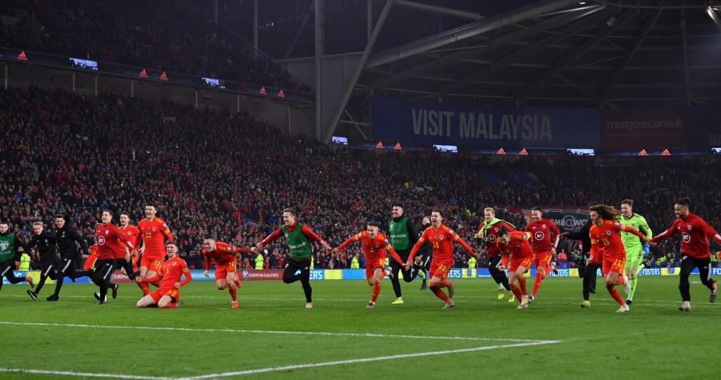 - © 2019 AFP | Crée le 20.11.2019 à 10h14 | Mis à jour le 29.01.2020 à 14h55ImprimerLes Gallois fêtent leur qualification pour l'Euro à l'issue de la victoire sur la Hongrie à Cardiff, le 19 novembre 2019 Paul ELLIS-AFP