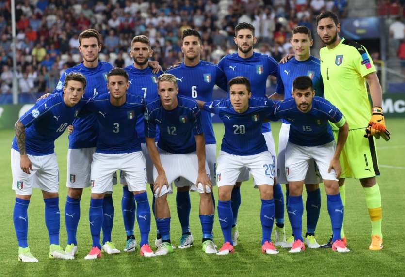 - © 2017 AFP | Crée le 27.06.2017 à 21h12 | Mis à jour le 27.06.2017 à 21h15ImprimerLes Espoirs italiens avant leur match contre l'Allemagne lors de l'Euro, le 24 juin 2017 à Cravovie JANEK SKARZYNSKI-AFP