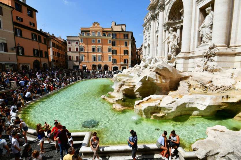 - © 2018 AFP | Crée le 30.08.2018 à 02h50 | Mis à jour le 30.08.2018 à 02h55ImprimerDes touristes devant la fontaine de Trévi à Rome, le 26 août 2018 Vincenzo PINTO-AFP