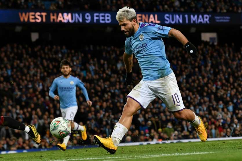 - © 2020 AFP | Crée le 15.02.2020 à 05h53 | Mis à jour le 15.02.2020 à 05h55ImprimerLe buteur argentin de Manchester City Sergio Agüero contre Manchester United en demi-finale retour de Coupe de la Ligue anglaise, le 29 janvier 2020 à l'Etihad Stadium de Manchester Paul ELLIS-AFP/Archives