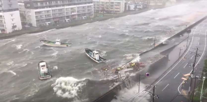 Quand le #typhon le plus puissant de ces 25 dernières années débarque au #Japon, ça ne rigole pas pic.twitter.com/g0eRsPJh4Y
