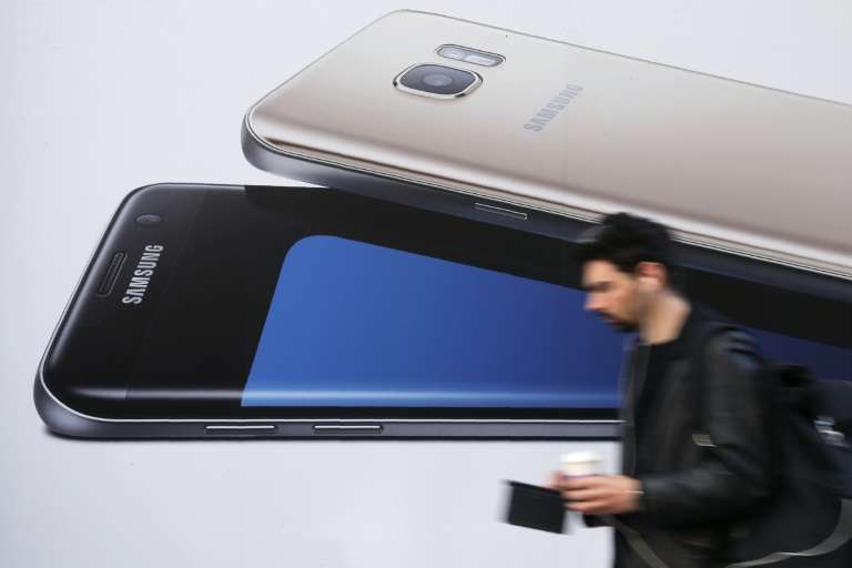 - © 2016 AFP | Crée le 12.10.2016 à 15h09 | Mis à jour le 12.10.2016 à 15h15ImprimerUn homme utilise un smartphone alors qu'il passe devant une publicité pour le Samsung Galaxy S7 à Londres le 11 octobre 2016