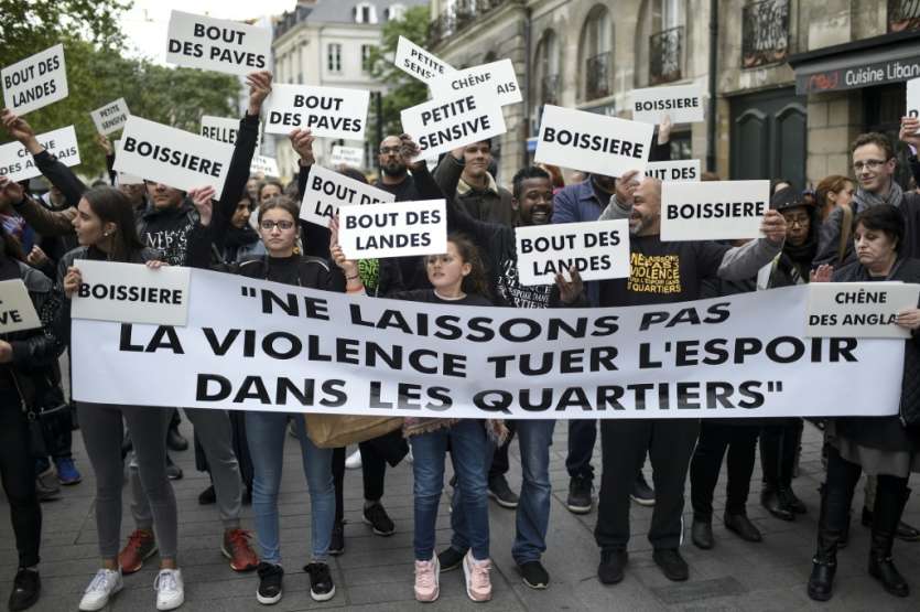 - © 2019 AFP | Crée le 29.04.2019 à 04h16 | Mis à jour le 29.04.2019 à 04h20ImprimerManifestation le 28 avril 2019 à Nantes pour protester "contre la guerre des quartiers" Sebastien SALOM-GOMIS-AFP