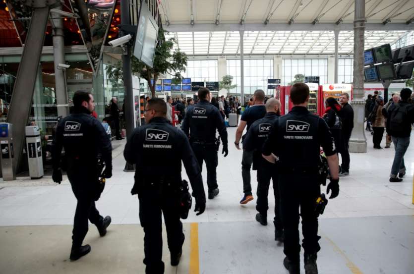 - © 2017 AFP | Crée le 02.05.2017 à 19h57 | Mis à jour le 02.05.2017 à 20h00ImprimerDes agents de la sûreté ferroviaire de la SNCF patrouillent dans la gare du Nord à Paris, le 22 avril 2017 GEOFFROY VAN DER HASSELT-AFP/Archives