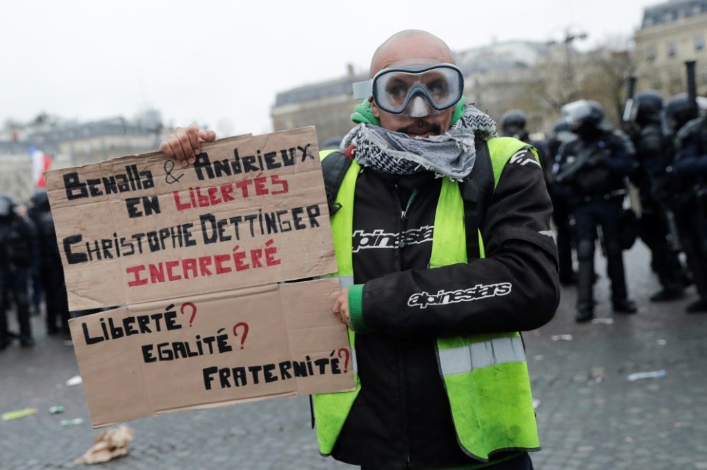 - © 2019 AFP | Crée le 13.02.2019 à 16h28 | Mis à jour le 13.02.2019 à 16h30ImprimerUn "gilet jaune" soutenant Dettinger, à Paris, le 12 janvier 2019 Thomas SAMSON-AFP/Archives
