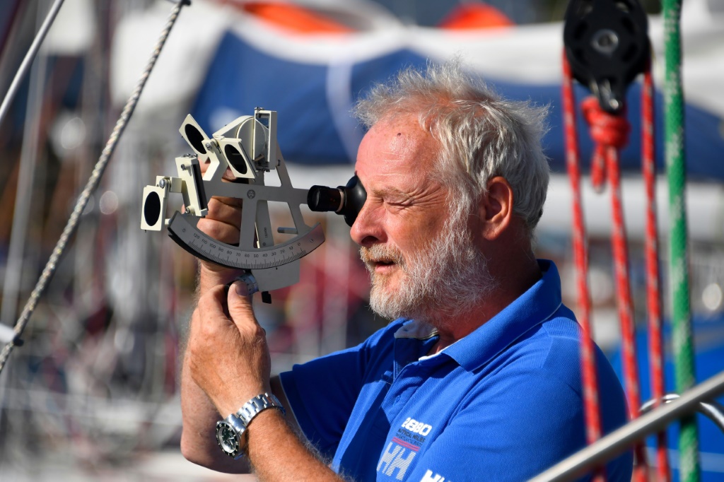 - © 2018 AFP | Crée le 01.07.2018 à 02h27 | Mis à jour le 01.07.2018 à 02h30ImprimerLe Norvégien Are Wiig utilise un sextant sur son bateau "Olleanna" aux Sables d'Olonne, le 30 , juin 2018, un tour du monde en solitaire Damien MEYER-AFP
