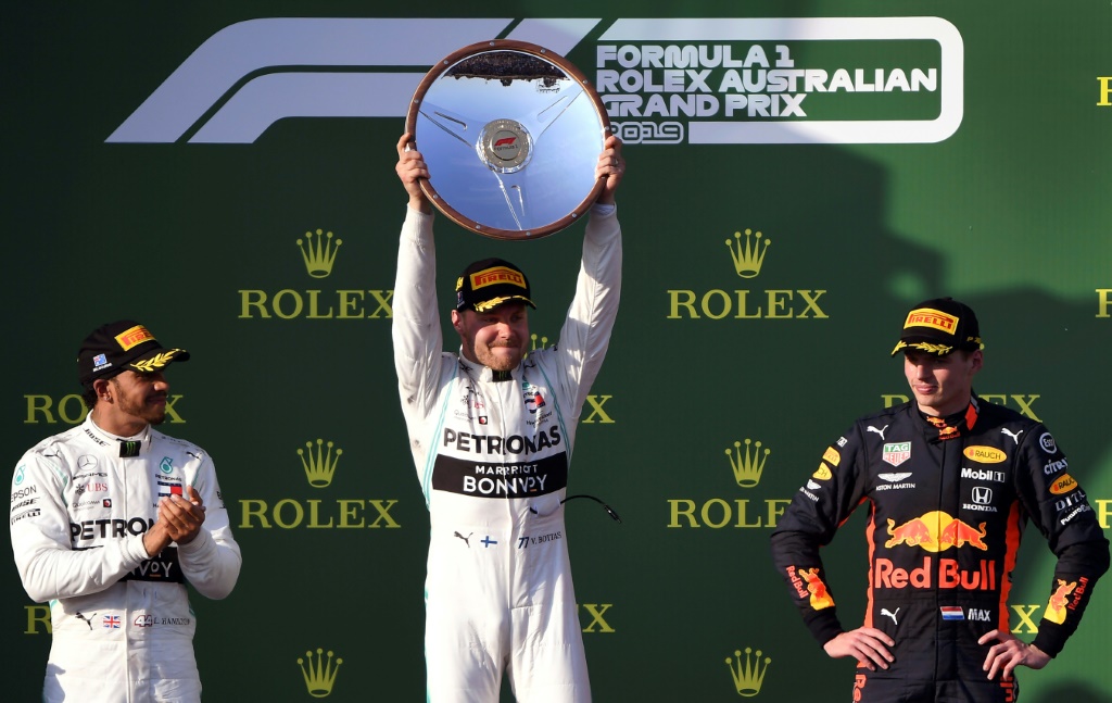 - © 2019 AFP | Crée le 17.03.2019 à 19h35 | Mis à jour le 17.03.2019 à 19h40ImprimerValtteri Bottas vainqueur avec Mercedes du premier GP de la saison, le 17 mars 2019 à Melbourne WILLIAM WEST-AFP