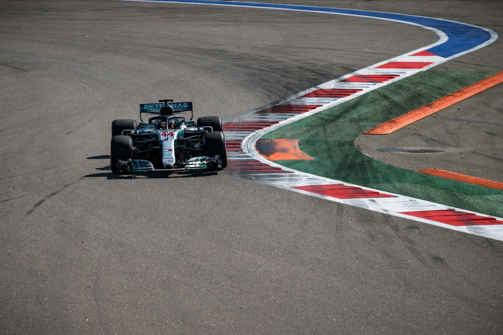 - © 2018 AFP | Crée le 29.09.2018 à 22h18 | Mis à jour le 29.09.2018 à 22h20ImprimerLe pilote Mercedes Lewis Hamilton dans une chicane lors de 3e séance d'essais libres du GP de Russie sur l'Autodrome Sotchi,le 29 septembre 2018 ANDREJ ISAKOVIC-AFP