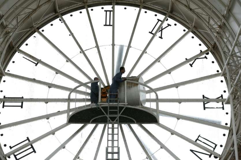 - © 2017 AFP | Crée le 26.03.2017 à 01h25 | Mis à jour le 26.03.2017 à 01h30ImprimerUn employé change l'heure d'une horloge géante à Cergy en prévision du passage à l'heure d'été le 26 mars 2015 THOMAS SAMSON-AFP/Archives