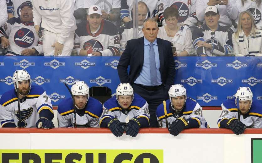 - © 2019 AFP | Crée le 27.05.2019 à 17h28 | Mis à jour le 27.05.2019 à 17h30ImprimerL'entraîneur des St Louis Blues Craig Berube (c) suit le match 1 du 1er tour de Conférence Ouest NHL contre les Winnipeg Jets, le 10 avril 2019 au Canada Jason Halstead-Getty/AFP/Archives
