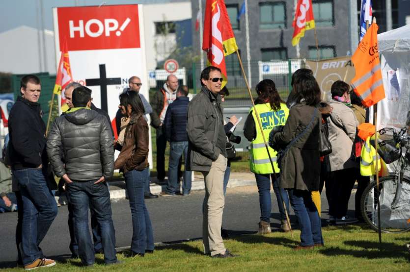 - © 2017 AFP | Crée le 12.07.2017 à 04h59 | Mis à jour le 12.07.2017 à 05h05ImprimerManifestation de collaborateurs de la compagnie aérienne Hop! à Morlaix, dans l'ouest de la France, le 7 avril 2017 FRED TANNEAU-AFP
