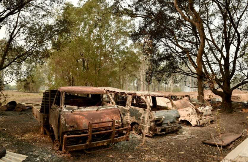 - © 2019 AFP | Crée le 11.11.2019 à 20h27 | Mis à jour le 11.11.2019 à 20h30ImprimerDes carcasses calcinées de véhicules après des incendies de brousse à Old Bar à 350 kms au nord de Sydney le 11 novembre 2019 PETER PARKS-AFP