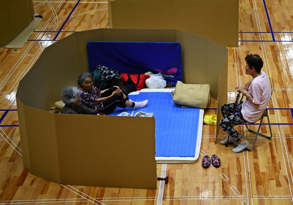 En plus des intempéries persistantes, les opérations de secours sont compliquées par les risques de contaminations au coronavirus. Des cloisons ont été installées dans les centres d'évacuation pour préserver une distance physique, et les déplacés sont appelés à se laver les mains fréquemment et à porter des masques.
