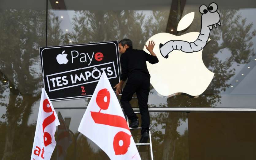 Certains des manifestants brandissaient des pancartes avec l'inscription "Apple paye tes impôts" et ont distribué des fac-similés de "bons de réduction" de 40 euros aux passants et clients. "Ils correspondent à ce qu'a volé Apple à chacun de ses clients depuis dix ans", a expliqué M. Pradeau.