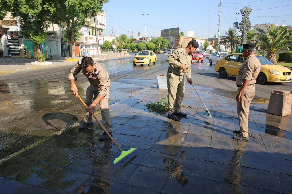 - © 2019 AFP | Crée le 05.10.2019 à 21h03 | Mis à jour le 05.10.2019 à 21h05ImprimerDes forces de sécurité irakiennes nettoient les rues à Bagdad après la levée du couvre-feu imposé en raison de manifestations, le 5 octobre 2019 SABAH ARAR-AFP