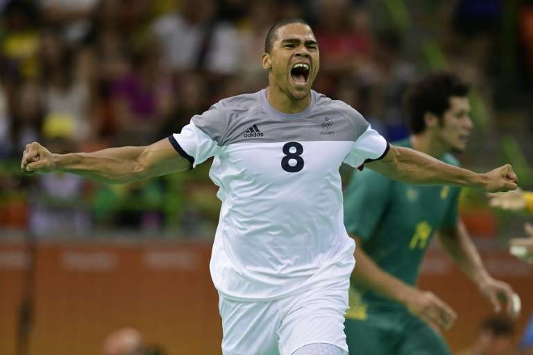 - © 2016 AFP | Crée le 18.08.2016 à 01h47 | Mis à jour le 18.08.2016 à 01h50ImprimerLe handballeur français Daniel Narcisse lors du quart de finale contre le Brésil, le 17 août 2016 aux JO de Rio