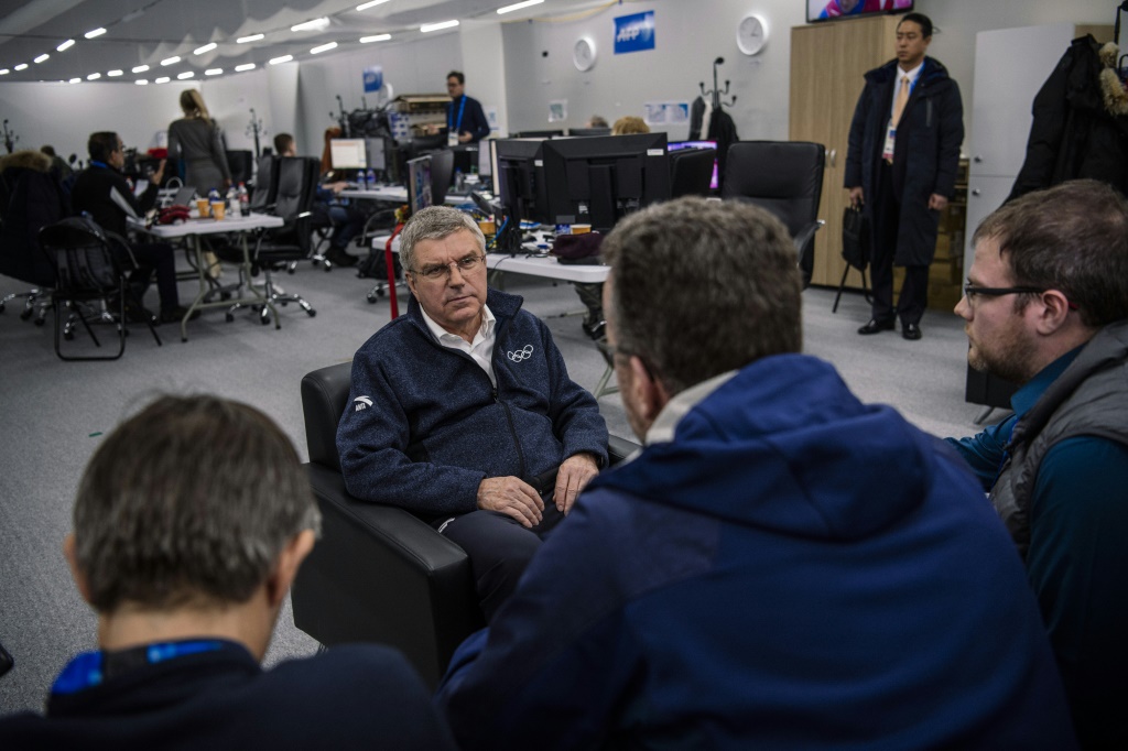 - © 2018 AFP | Crée le 12.02.2018 à 20h33 | Mis à jour le 12.02.2018 à 20h35ImprimerLe président du CIO Thomas Bach lors de sa visite au bureau de l'AFP aux JO, le 12 février 2018 à Pyeongchang Dimitar DILKOFF-AFP