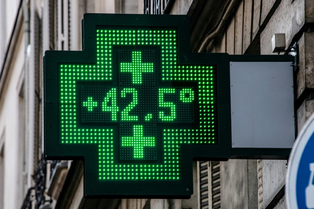 - © 2019 AFP | Crée le 05.08.2019 à 22h11 | Mis à jour le 05.08.2019 à 22h15ImprimerLe thermomètre d'une pharmacie indique 42,5°C, le 25 juillet 2019 lors d'un épisode de canicule à Paris BERTRAND GUAY-AFP/Archives