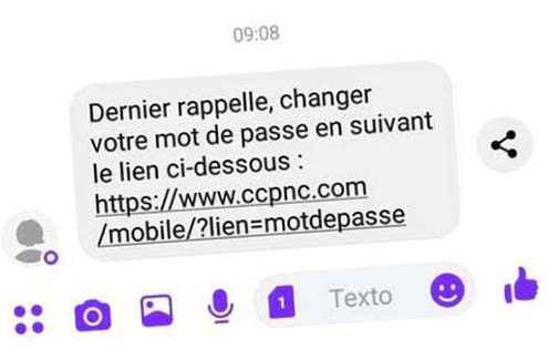 Ce message « a pour but de vous faire changer votre mot de passe en cliquant sur un lien et provient d'un contact "CCP" », explique l'Office, qui invite les utilisateurs à le supprimer immédiatement, à ne surtout pas cliquer sur le lien qu'il contient et à bloquer l'expéditeur !