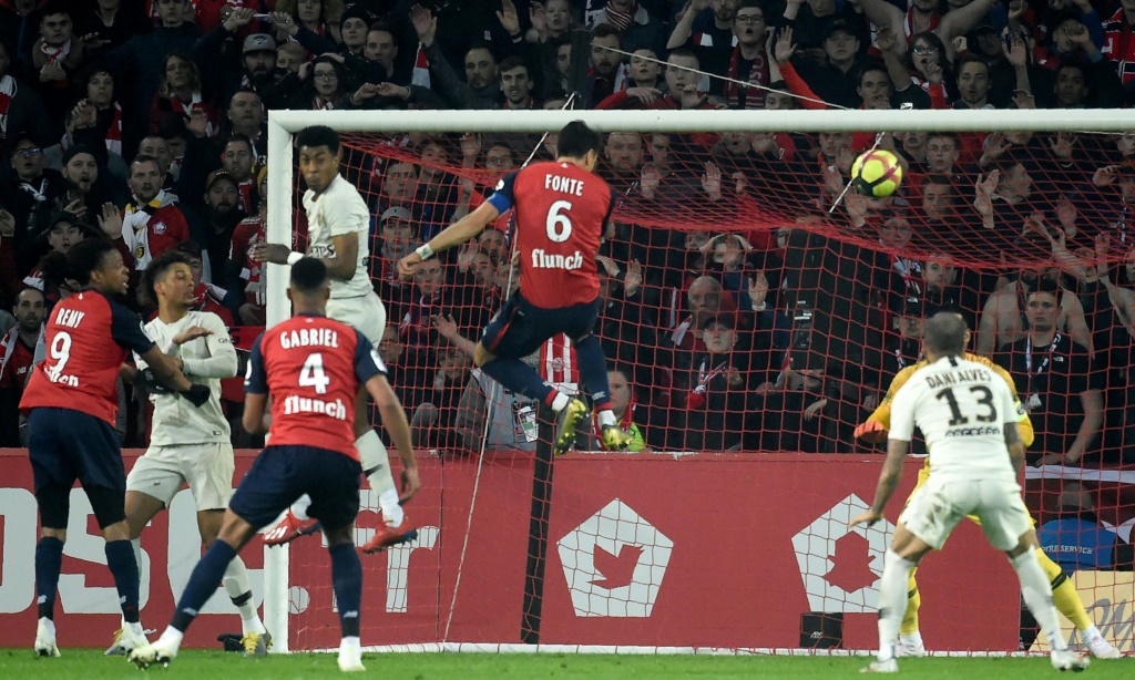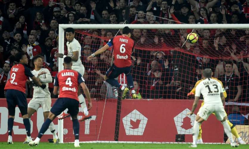 - © 2019 AFP | Crée le 15.04.2019 à 08h04 | Mis à jour le 15.04.2019 à 08h05ImprimerLe défenseur de Lille José Fonte (c) buteur lors de la victoire 5-1 face au PSG en 32e journée de L1 le 14 avril 2019 à Villeneuve-d'Ascq FRANCOIS LO PRESTI -AFP