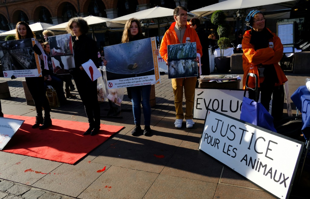 - © 2017 AFP | Crée le 17.02.2017 à 19h39 | Mis à jour le 17.02.2017 à 19h40ImprimerDes membres de l'association de défense des animaux L214 le 21 décembre 2016 lors d'une manifestation à Toulouse ERIC CABANIS-AFP