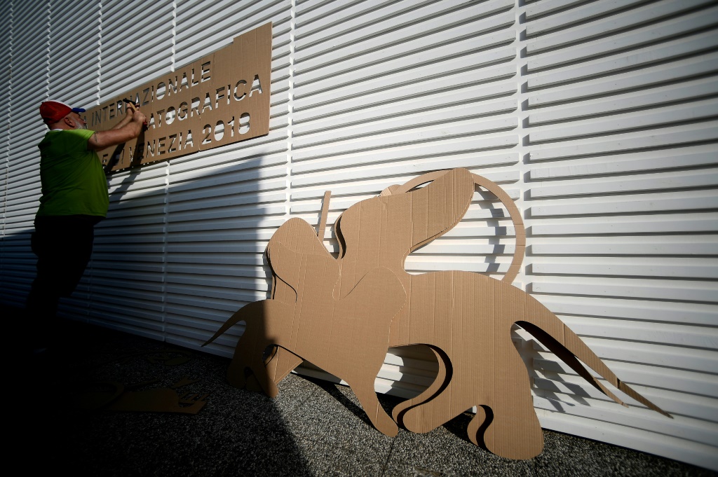 - © 2018 AFP | Crée le 29.08.2018 à 13h44 | Mis à jour le 29.08.2018 à 13h45ImprimerUn employé s'attelle aux derniers préparatifs à la veille du festival de la Mostra de Venise, le 28 août 2018 Filippo MONTEFORTE-AFP