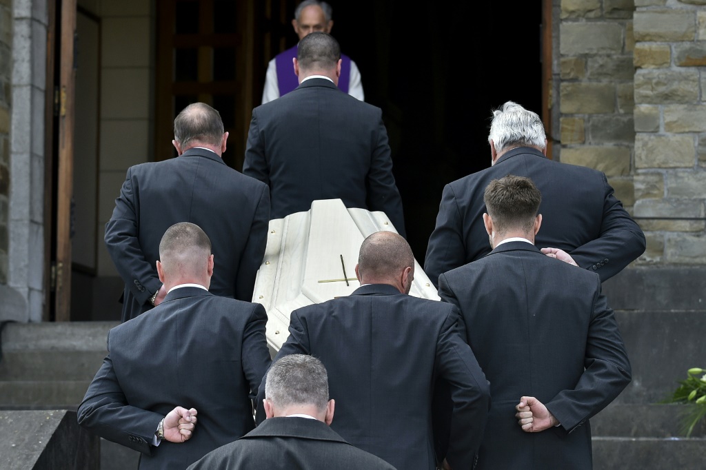 - © 2018 AFP | Crée le 18.05.2018 à 06h25 | Mis à jour le 18.05.2018 à 06h30ImprimerLe cercueil de Maurane est conduit dans l'église Notre-Dame-des-Grâces de Bruxelles, le 17 mai 2018 JOHN THYS-AFP