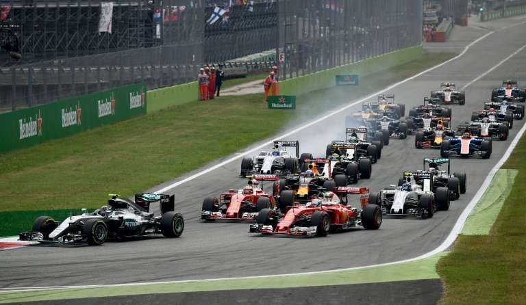 - © 2016 AFP | Crée le 08.09.2016 à 16h12 | Mis à jour le 08.09.2016 à 16h15ImprimerLes monoplaces au départ du Grand prix d'Italie de sur, l'Autodrome de Monza, le 4 septembre 2016