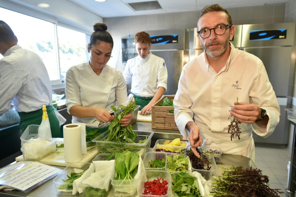 - © 2018 AFP | Crée le 31.01.2018 à 03h29 | Mis à jour le 31.01.2018 à 03h30ImprimerLe chef Sébastien Bras dans la cuisine de son restaurant Le Suquet, le 2 septembre 2017 à Laguiole, dans l'Aveyron REMY GABALDA-AFP/Archives
