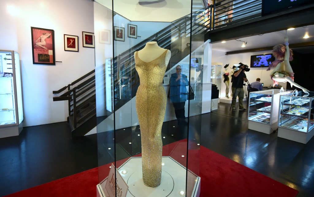 La robe épousait tellement les formes de Marilyn --qui ne portait pas de sous-vêtements-- qu'elle avait dû être cousue sur la légendaire actrice et chanteuse peu avant qu'elle n'entre en scène au Madison Square Garden à New York le 19 mai 1962 pour chanter "Happy Birthday Mr President" de sa célèbre voix sensuelle.