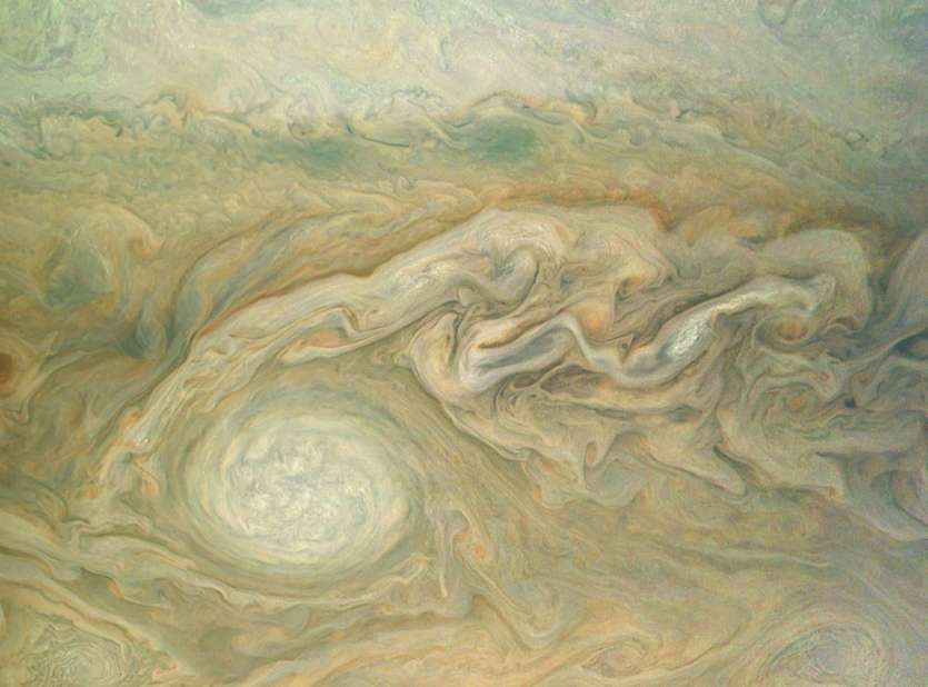 "Si quelqu'un va expliquer l'énigme de ce qui se trouve sous ce gigantesque tourbillon, c'est Juno et ses instruments capables de pénétrer ces épaisses couches nuageuses", a-t-il assuré.