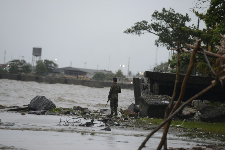- © 2016 AFP | Crée le 04.08.2016 à 16h53 | Mis à jour le 04.08.2016 à 17h00ImprimerUn soldat le 3 août sur le rivage de Puerto Cortes au Honduras avant le passage de l'ouragan Earl