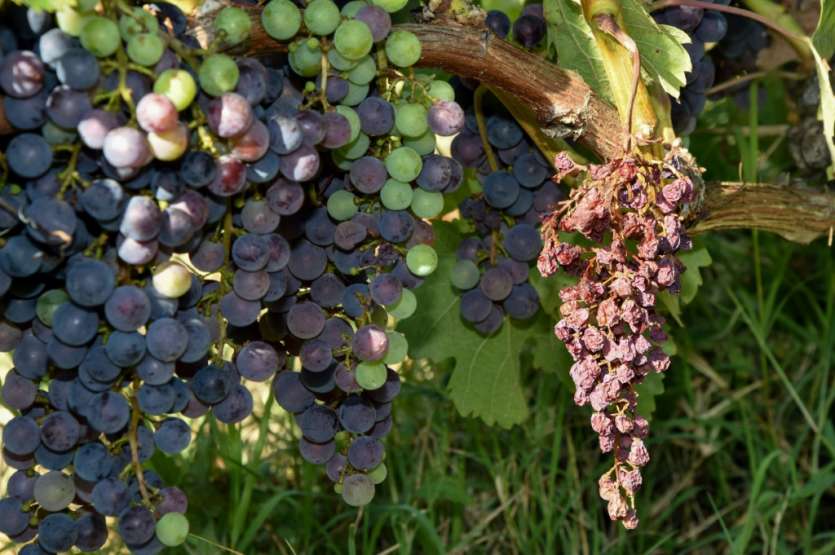 - © 2018 AFP | Crée le 25.08.2018 à 01h34 | Mis à jour le 25.08.2018 à 01h40ImprimerRaisin attaqué par le mildiou dans le Bordelais, en août 2018 MEHDI FEDOUACH-AFP/Archives