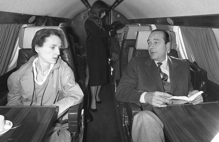 - © 2016 AFP | Crée le 15.04.2016 à 03h22 | Mis à jour le 15.04.2016 à 04h05ImprimerL'ex-président français Jacques Chirac (d) avec sa fille Laurence, le 26 avril 1981 à bord d'un avion à destination de Sarran en Corrèze GEORGES BENDRIHEM-AFP/Archives