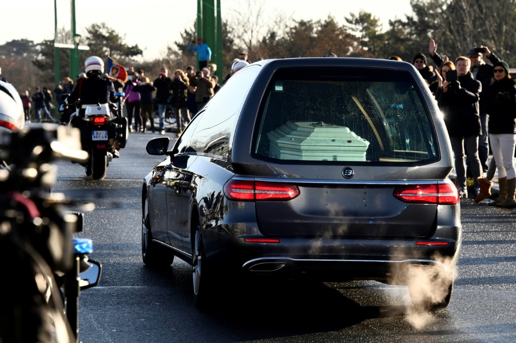 Le corbillard aux vitres transparentes transportant le cercueil de couleur crème dans lequel repose le défunt était précédé d'une escorte de plusieurs motards de la police et accompagné d'un cortège de nombreux véhicules.