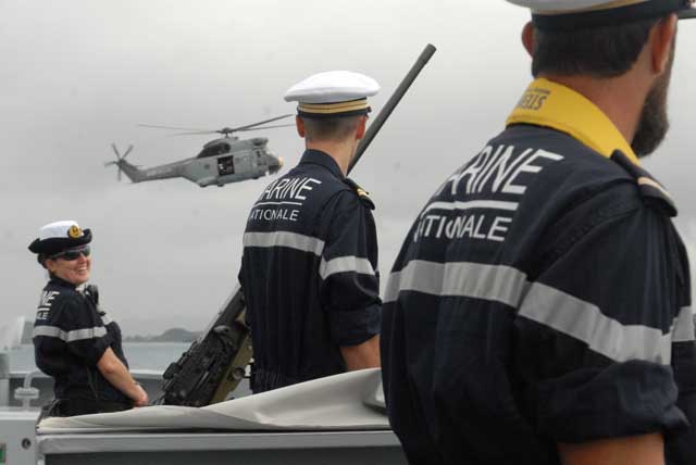 Au passage du navire, dix-sept coups de canon ont été tirés depuis la base navale pour saluer le général commandant supérieur des Forces armées de Nouvelle-Calédonie.