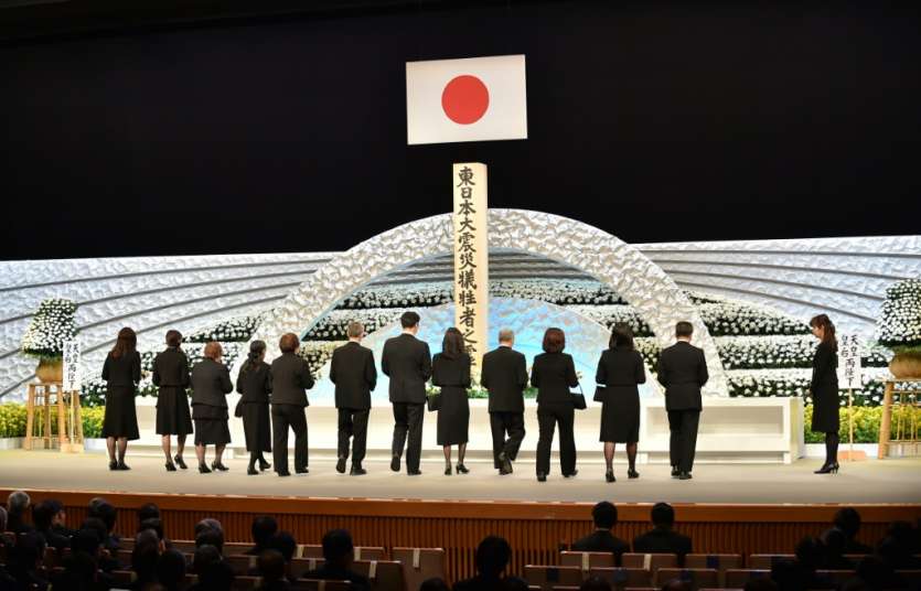 Au même instant, une cérémonie officielle en présence du Premier ministre Shinzo Abe se tiendra à Tokyo. Le couple impérial, qui avait pour le cinquième anniversaire présidé devant 1.200 personnes à ce moment empreint d'une grande tristesse, ne sera cette fois pas présent mais sera représenté par son fils, le prince Akishino.